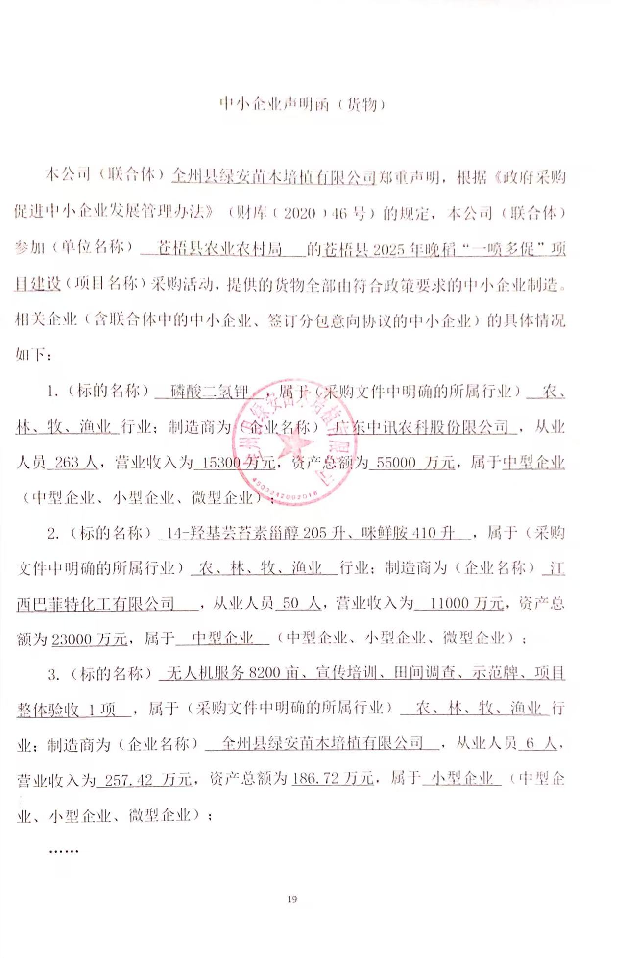 蒼梧縣2025年晚稻“一噴多促”項目建設(NNPZWZ-2025-J1005) 成交結果公告